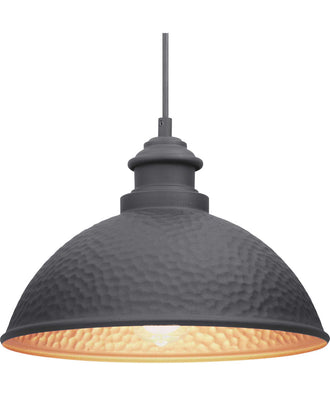 Inspired by the look of hammered copper Englewood fixtures display elements of rustic craftmanship. An interior coating of copper metallic paint amplifies its illumination. The hanging lantern is ideal for an exterior portico or interior foyer, over kitchen islands or a dining table in a covered outdoor living area, in a breakfast nook, porch or sunroom. Perfect for Farmhouse interior and exterior architecture. Deep Black finish. Measures 12in diameter x 8in ht. Uses one 100-watt max. medium base bulb or LED equivalent (sold separately). Dark Sky compliant. UL Safety listed for use in damp locations. Compatible with standard wall dimmer. Progress Lighting products are designed for exceptional quality, reliability, and functionality. Includes installation instructions and mounting hardware. Coordinating fixtures available