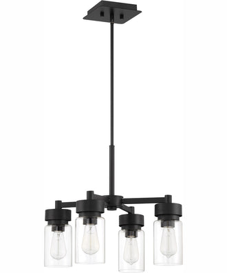 The chandelier boasts a striking Midnight finish that exudes a sense of contemporary charm. This deep, rich color complements a variety of decor styles, from modern and minimalist to rustic and industrial. The clear glass shades provide a beautiful contrast to the dark finish, enhancing the overall aesthetic appeal and making it a versatile addition to any setting.