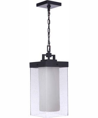 This pendant light measures 20.08 inches in height and 8.86 inches in width and depth, making it a substantial yet unobtrusive lighting solution. It requires a single 60-watt A19 bulb (not included), which provides ample illumination for outdoor spaces such as patios, porches, and entryways. The seeded glass shade adds a textured look, diffusing the light softly and creating a welcoming glow.