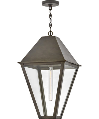 The Endsley 1-Light Large Hanging Lantern in Blackened Brass is a testament to stately, modern design. Its oversized roof, coupled with a simple chimney, exudes a dignified presence that is both timeless and contemporary. The lantern's tall, clear glass panels allow for an unobstructed view of the light source, enhancing its sleek and sophisticated appeal. The artisanal Blackened Brass finish adds a touch of elegance and refinement, making this fixture a standout piece in any outdoor setting.