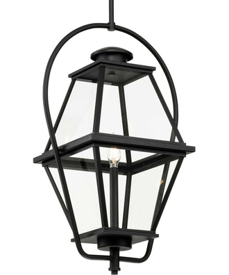 Bradshaw 1-Light Clear Glass Transitional Outdoor Hanging Lantern Textured Black