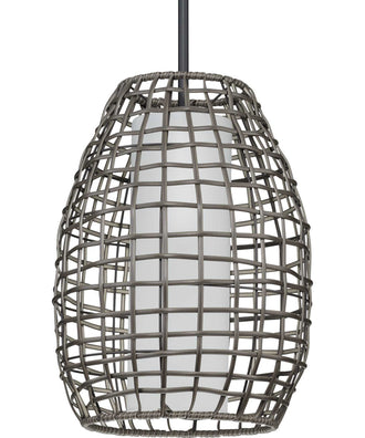 Unite global feel and coastal warmth with the Pawley Collection 1-Light Dark Gray Rattan Coastal Outdoor Hanging Pendant Light. The synthetic dark gray rattan frame has a graceful, lattice-like design that gives the fixture charm and depth. A light source diffuses from within the etched glass shade cradled inside the airy basketweave design offering an organic feel.