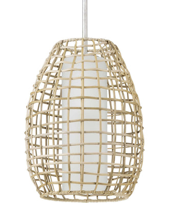 Unite global feel and coastal warmth with the Pawley Collection 1-Light Natural Rattan Coastal Outdoor Hanging Pendant Light. The synthetic light natural rattan frame has a graceful, lattice-like design that gives the fixture charm and depth. A light source diffuses from within the etched glass shade cradled inside the airy basketweave design offering an organic feel.