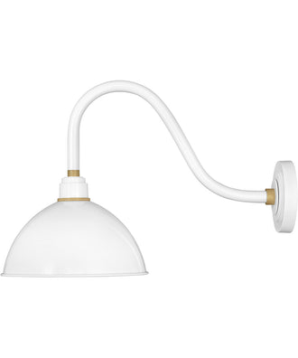 The 1-Light Medium Gooseneck Outdoor Barn Light in Gloss White by Hinkley brings a touch of classic elegance to your outdoor spaces. The light features a sleek, curved gooseneck arm that extends gracefully from a round backplate, lending a timeless appeal to its overall design. The dome-shaped shade, finished in a pristine gloss white, adds a modern twist to the traditional barn light style, making it a versatile piece that can complement various architectural aesthetics.