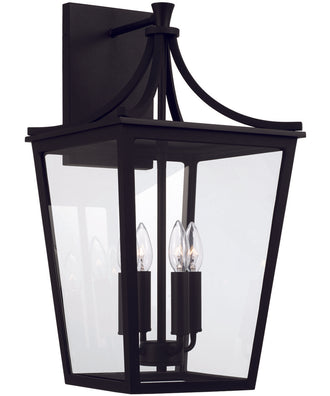 Transform your home's exterior with the Adair 4-Light Outdoor Wall Lantern, a perfect blend of timeless elegance and modern functionality. This stunning lantern features gracefully curved tented lines at the top, paired with clear glass tapered panes that exude effortless charm. The sleek black finish adds a touch of sophistication, making it an ideal choice for enhancing your curb appeal.