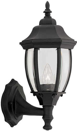 This outdoor wall sconce boasts a classic lantern design, characterized by its gracefully curved lines and clear glass panels. The traditional aesthetic is complemented by modern functionality, providing both style and practicality. It measures 14.75 inches in height and 6.5 inches in width, making it a substantial yet unobtrusive addition to your outdoor spaces. The sconce accommodates one 100-watt incandescent medium base bulb (not included), offering ample illumination for your porch, patio, or garden.