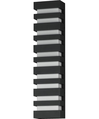 Imagine this Keyes 28" LED Outdoor Wall Sconce enhancing your daily experience. With its sleek, modern design, this wall sconce adds a touch of sophistication to any exterior space. The black finish provides a striking contrast against the white acrylic material, creating a visually appealing aesthetic that complements contemporary architectural styles. The geometric, layered structure of the sconce offers a unique and stylish appearance, making it a standout piece in your outdoor decor.
