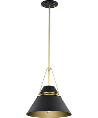 Crafted from durable steel, the Adina 1-Light Pendant features a classic conical shape that directs light downward, making it perfect for illuminating specific areas. The matte black finish exudes modern elegance, while the natural brass accents add a touch of vintage charm. This harmonious blend of contemporary and traditional elements ensures that the Adina pendant will seamlessly integrate into both modern and classic decor themes.