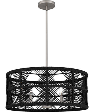 Introducing the Axford collection, where modern design meets natural charm. This collection features a distinctive rope shade that infuses warmth and texture into any space, while the sleek metal frame introduces an element of industrial chic. Choose from two elegant finishes: antique nickel with a black rope shade for a striking contrast, or matte black with a natural rope shade for a more earthy, sophisticated look. Axford is available as a drum pendant or semi-flush mount light.