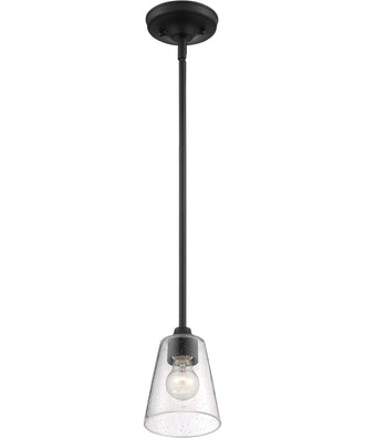 The matte black finish and clear seeded glass design make this pendant light a versatile addition to various room themes. It complements modern, industrial, and contemporary decor styles, adding a sleek and polished look to your space. The minimalist design ensures that it blends seamlessly with existing furnishings and decor, while the elegant glass shade adds a touch of sophistication and charm. Whether you are looking to update your home or office, the Bransel 1-Light Pendant is a stylish and practical choice.