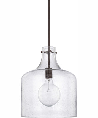 The Crawford 1-Light Pendant in Bronze by Capital Lighting is a stunning addition to any home or office. This elegant fixture combines timeless design with modern functionality, making it a versatile choice for various interior styles. Its clear seeded glass shade and bronze finish create a sophisticated look that enhances any room's ambiance.