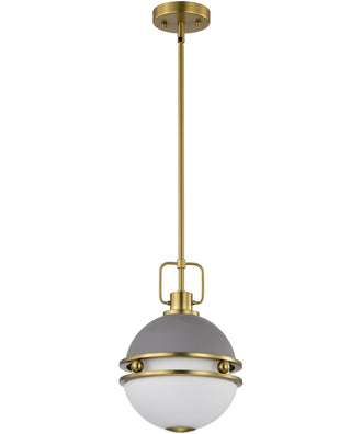 The Everton 1-Light Pendant in Matte Gray by Nuvo Lighting is a stunning example of modern elegance. This pendant light features a sleek, spherical design that effortlessly combines contemporary aesthetics with timeless appeal. The matte gray finish of the steel body is beautifully complemented by brass accents, creating a sophisticated look that can elevate any space. The etched opal glass shade diffuses light softly, adding a warm and inviting ambiance to your room.