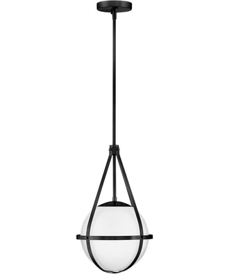 The Colby 1-Light Small Pendant in Black is a retro, modern stunner that brings unexpected glamour to any space. Its design features a cased opal glass globe, which is beautifully accentuated by a cage-style frame. The black finish adds a touch of sophistication and elegance, making it a versatile addition to various decor styles. This pendant light is crafted with high-quality steel, ensuring durability and longevity.