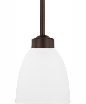 The Jameson 1-Light Pendant in Bronze by Capital Lighting is a stunning addition to any room, offering a perfect blend of elegance and functionality. The pendant features a sleek bronze finish that exudes sophistication and complements a variety of decor styles. Its soft white glass shade provides a gentle diffusion of light, creating a warm and inviting ambiance in any space.