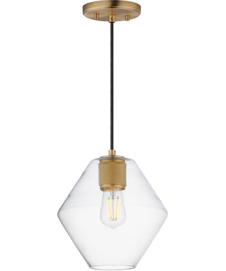 The Geode Medium Pendant's sleek and modern design makes it compatible with a wide range of room themes. Its geometric shape and clear glass shade complement minimalist and contemporary interiors, while the natural aged brass finish adds a touch of warmth and elegance to industrial and modern spaces. Whether your home features clean lines and neutral colors or bold, eclectic decor, this pendant will fit right in.