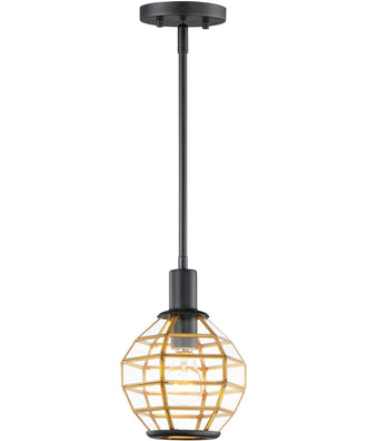 The 8"W Heirloom 1-Light Mini Pendant in Black and Burnished Brass is a stunning piece that brings a touch of classic elegance to any space. Its globe shape, crafted with rectilinear clear glass panels, showcases a sophisticated design that seamlessly blends traditional and contemporary styles. The two-tone finish of black and burnished brass adds a refined contrast, making it a standout feature in any room.