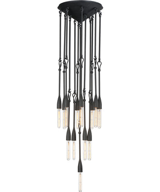 The Pioneer 13-Light Pendant boasts a unique tiered design, with metal rods cascading down from the canopy. Each rod is meticulously crafted with hook and loop details, showcasing exceptional craftsmanship. The pendant's verticality is accentuated by tubular filament lamps, which not only provide ample illumination but also add a vintage flair to the overall aesthetic. The Anthracite finish lends a rugged yet refined look, making this pendant a versatile addition to various interior styles.