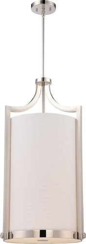 The polished nickel finish and white fabric shade of the Meadow 4-Light Pendant make it an excellent fit for various room themes and decor styles. It pairs beautifully with modern and contemporary interiors, where clean lines and sleek finishes are key elements. The pendant's elegant design also works well with transitional decor, blending traditional and modern elements for a harmonious look.