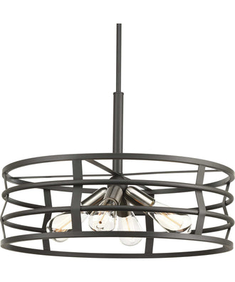 Introducing the Remix 4-Light Global Pendant Light in Graphite, a stunning addition to any modern or industrial-themed space. This pendant light features a unique open cage design crafted from steel straps that weave together seamlessly, creating an eye-catching focal point for your room. The graphite finish lends a sophisticated, contemporary touch, while the brushed nickel accents on the inside add a hint of mixed metal elegance. This blend of materials and finishes results in a versatile fixture that complements a variety of interior styles, from global and farmhouse to rustic and urban industrial.