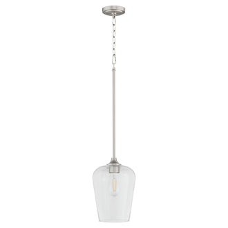This pendant light is designed with a soft contemporary style that blends seamlessly with both modern and traditional decor. The clear shade allows for maximum light output, ensuring your space is well-lit and inviting. Measuring 10 inches in height and 8 inches in width, this pendant is the perfect size for various applications, from kitchen islands to dining areas and entryways.
