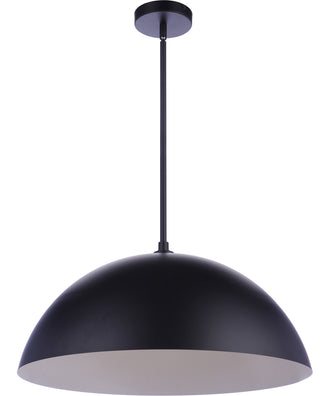 The Sculptural Statement Pendant features a minimalist design that seamlessly blends with contemporary and industrial décor styles. The flat black finish on the exterior exudes a chic, understated elegance, while the crisp matte white interior enhances the light output, creating a warm and inviting ambiance. The dome shape of the pendant adds a sculptural element to your space, making it not just a source of light but a piece of art.