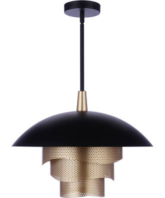 The pendant features a sleek 19-inch dome finished in flat black, complemented by triple-tiered waves of matte gold mesh. The unique design of the mesh creates an intriguing visual effect, adding depth and dimension to your interior decor. The perforated gold mesh allows light to filter through, casting beautiful patterns and creating a warm, inviting ambiance.