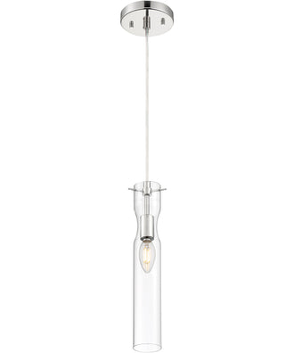 The 14"H Spyglass 1-Light Pendant in Polished Nickel is a stunning addition to any modern or contemporary space. Its sleek and minimalist design features a clear cylindrical glass shade that beautifully showcases the light bulb within, creating an elegant and sophisticated look. The polished nickel finish adds a touch of luxury and complements the clean lines of the pendant, making it a versatile piece that can enhance various interior styles.