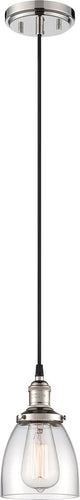 The 5"W Vintage 1-Light Pendant in Polished Nickel by Nuvo Lighting is a perfect blend of elegance and functionality. This exquisite pendant light features a sleek, polished nickel finish that exudes sophistication and modernity. The clear glass shade showcases a vintage-inspired design, adding a touch of timeless charm to any space. The combination of glass and metal materials ensures durability while maintaining a lightweight structure.