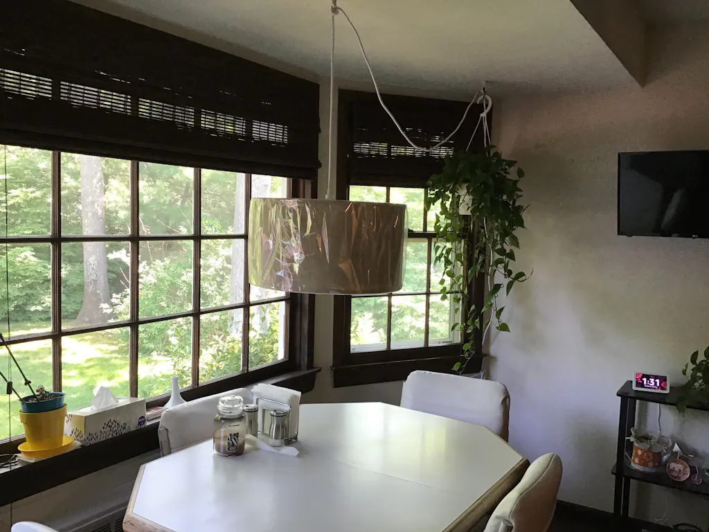 • Over a table, the shade shields the eyes.