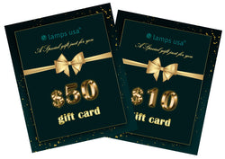 Shopping for someone else but not sure what to give them? Give them the gift of choice with a LampsUSA Gift Card. Gift card(s) is delivered by email and contain instructions to redeem them at checkout. Our gift cards have no additional processing fees. **Please allow up to 24 business day hours for receipt of gift card via email. No expiration date.**