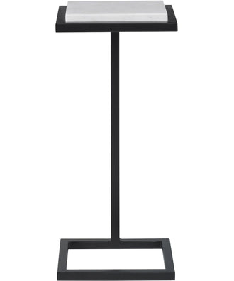 This elegantly designed martini table will be perfect beside your favorite chair. Finished in a satin black, it is topped with a thick white polished marble.