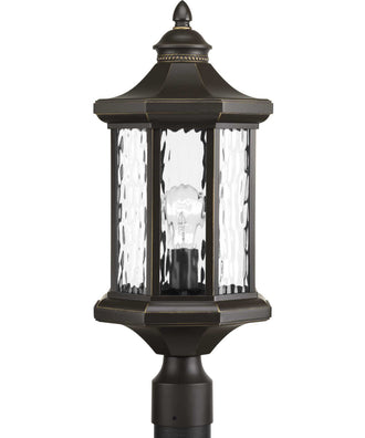 Constructed from die-cast aluminum with a powder coat finish, this post lantern is built to withstand the elements and maintain its beauty over time. The robust construction ensures durability, while the painted finish provides additional protection against wear and tear. The lantern's glass shade is crafted from high-quality water glass, offering both aesthetic appeal and functional performance.