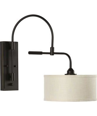 Ideal for mounting on a wall in a bedroom, office, den, living room, or wherever focused light is desired for tasks or reading. Updated classic styling is ideal for Transitional and Farmhouse interiors. A modern, one-light wall bracket featuring a sleek, curved arm holding the textured shade. Multi-directional arm allows the entire fixture to rotate from side to side. On/off rotary switch on backplate. Uses one 75-watt max medium base bulb, including the LED equivalent, that is sold separately. Textured linen shade glows from the inside out. Finished in Antique Bronze with a warm, Harvest Linen shade. Measures 12 in diameter X 19-3/4 in height, Extends from the wall 23-5/8 in. Progress Lighting products are designed for exceptional quality, reliability, and functionality. WARRANTY: Our 1-year Limited Warranty guarantees your complete satisfaction with your purchase and includes professional after-sales customer service support.