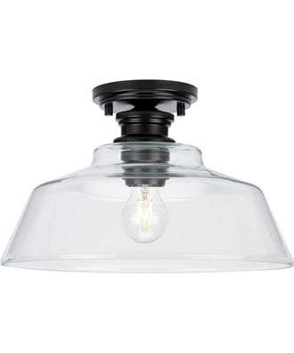 Singleton 1-Light 14" Farmhouse Medium Semi-Flush Mount Light with Clear Glass Shade Matte Black