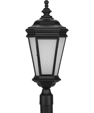 Perfect light fixture choice for a lawn, driveway, sidewalk, or outdoor living space. Ideal for transitional or new traditional style settings. Timeless, traditional lantern frame is coated in a classic textured black finish with a hinged door for easy access to change bulbs. Beautiful etched glass provides generous illumination A hinged door is provided for easy maintenance. Die cast aluminum constructed to ensure a long product lifespan. Use 1 medium base bulb that is sold separately (100w max - LED/CFL/incandescent). compatible with dimmable bulbs. Measures 24-5/8-in. height by 9-7/8-in. length by 9-7/8-in. width, fits 3" post (sold separately). Certifications: cCSAus Wet Location Listed is suitable for any environment, this truly versatile piece is weather resistant and can be placed outside or inside for a trend-setting look. Includes all mounting hardware and installation instructions for quick and easy installation. Our 1-Year Limited Warranty guarantees your complete satisfaction with your purchase and includes professional after-sales customer service support