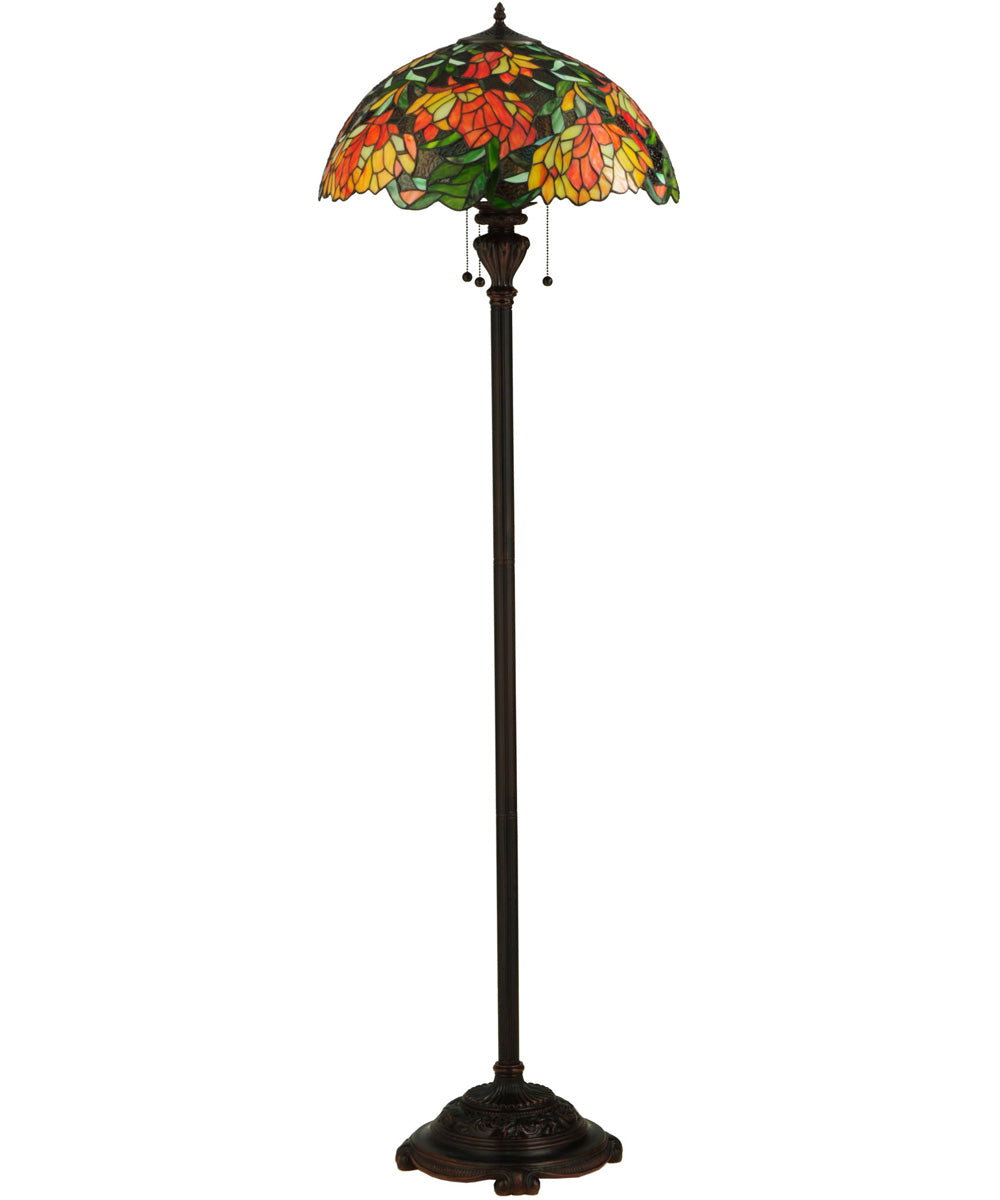 Recap: The 66"H Lamella Floor Lamp features a beautiful Tiffany-style stained glass shade with a floral motif, a warm Mahogany Bronze finish, and intricate base details. It provides ample illumination with three medium base bulbs and is UL Listed for dry locations. Ideal for living rooms, bedrooms, home offices, and more, this lamp complements various decor themes and adds a touch of elegance to any space. Order now to bring this stunning piece into your home.