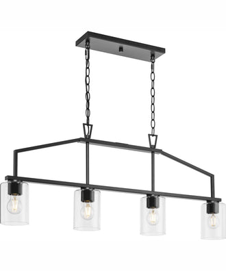 The Goodwin Island Light boasts a minimalist yet striking design. Its matte black finish adds a touch of elegance and sophistication, while the clear glass shades provide a modern flair. The cylindrical glass shades are designed to offer bright illumination, making this fixture not only stylish but also highly functional. The rectangular canopy and dual chains add to its modern farmhouse appeal, ensuring it stands out as a statement piece in any room.