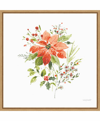 ART DESCRIPTION: A poinsettia bouquet with sprigs of greenery in traditional colors creates a classic holiday print. This Amanti Art canvas art print was created by Lisa Audit and printed by Amanti Art in Madison WI. The canvas is stretched by hand and finished with a float frame. Individually made using traditional custom framing techniques, it has the quality you would expect from your local frame shop. Because of our attention to detail and focus on artistry, architects, interior designers, and homeowners alike choose this framed canvas artwork to create beautiful living spaces.