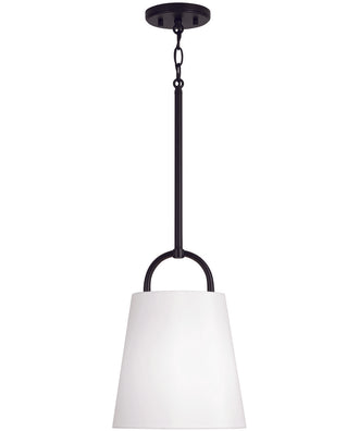 Embodying true minimalist form, the Brody 1-Light Pendant in Matte Black brings sleek, simplified style to any space. This pendant light features a classic design with a modern twist, making it an ideal addition to contemporary and traditional interiors alike. The Matte Black finish enhances the sophisticated look of the white fabric shade, creating a striking contrast that adds visual interest to your decor.
