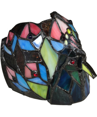A one of a kind blend of color, shape and texture our Peacock Tiffany Candle Votive will be a bright addition to your home. This three dimensional depiction of a peacock is crafted in hand rolled and individually copper foiled art glass, using the same technique first developed by Louis Comfort Tiffany in the late Nineteenth Century. Dark blue, light blue and white art glass is set in a pattern that recreates the peacock’s feathers. His body is accented with amber art glass jewels for extra texture. His face features amber eyes and a yellow beak and crest for added authenticity. Place a lighted candle (not included) inside and watch him come alive with a spectacular burst of bright color. The ideal gift for the bird aficionado, our Peacock Tiffany Candle Votive is destined to become a cherished family favorite for generations to come.