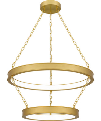 With its contemporary charm and elegance, the Ozara pendant light is a true standout piece. The layered, antique brass rings feature integrated LED light sources for a bright halo-like glow. Part of the popular Platinum by Quoizel collection, Ozara is a perfect addition to any modern or contemporary space.