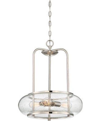 The brushed nickel finish of the Trilogy pendant offers a sleek, contemporary look that enhances its overall appeal. The clear seedy glass shade adds a touch of vintage allure, creating a beautiful contrast with the modern metal elements. This combination of materials and finishes ensures that the pendant light stands out as a statement piece in any room.