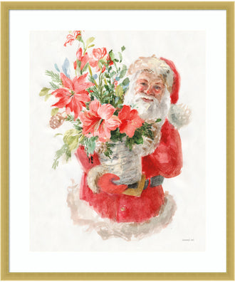 Amanti art Floral Santa by Danhui Nai Wood Framed Wall Art Print (21 W x 25 H), Svelte Polished Gold Frame