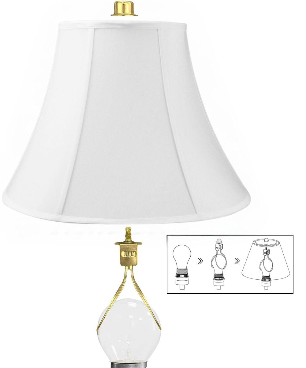 Designed with convenience in mind, the clip-on fitter allows for quick and effortless installation. Simply clip the lampshade onto your standard Edison light bulb, which is 1.75" wide, and you're good to go. The complete shade kit includes everything you need: a clip-on fitter, the lampshade itself, and a brass finial cap. This user-friendly design ensures that anyone can easily enhance their lighting setup without any hassle.