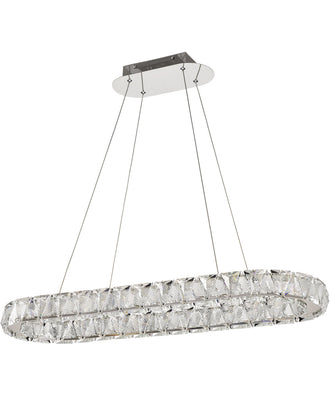 Featuring luxurious K9 crystal, each piece of the Asher 62-2443 LED oval island light sparkles with brilliance and sophistication, reflecting the light to mesmerizing effect. Finished in polished nickel, it offers a refined contrast that enhances its crystal beauty. The perfect melding of timeless luxury and modern flair, transforming any room into an oasis of elegance and illumination.