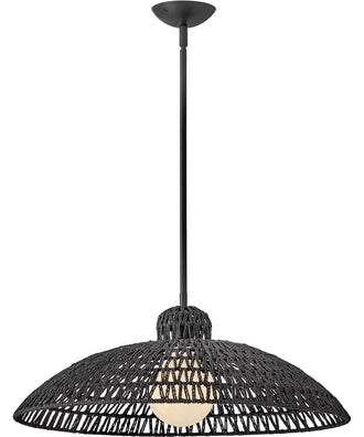 The Pismo 1-Light Large Pendant in Black is the epitome of coastal charm and effortless style. This stunning pendant light features a basket-woven, natural rattan shade that exudes breezy, laid-back beach vibes. The intricate weaving pattern creates a visually captivating design, making it a perfect centerpiece for any room.