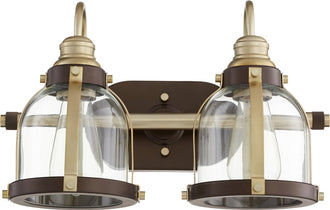 Quorum 16"W 2-light Bath Vanity Light Aged Brass w/ Oiled Bronze