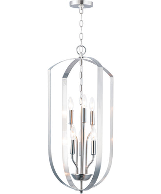 The 15"W Provident 6-Light Chandelier in Satin Nickel is a stunning addition to any home, offering a blend of modern elegance and timeless appeal. The chandelier features pivoting metal bands that create a captivating frame around the six candelabra-style lights. The Satin Nickel finish adds a touch of sophistication, making it a versatile piece that complements various interior design styles, from contemporary to transitional.