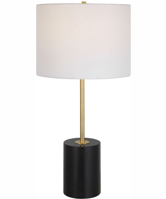28"H 1-Light Table Lamp Metal in Matte Black and Gold with a Drum Shade