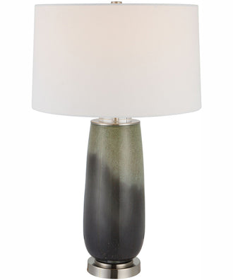 • Features: This elegant table lamp features a beautiful speckled green and gray-blue ombre glass base with crystal accents and brushed nickel finished iron details.